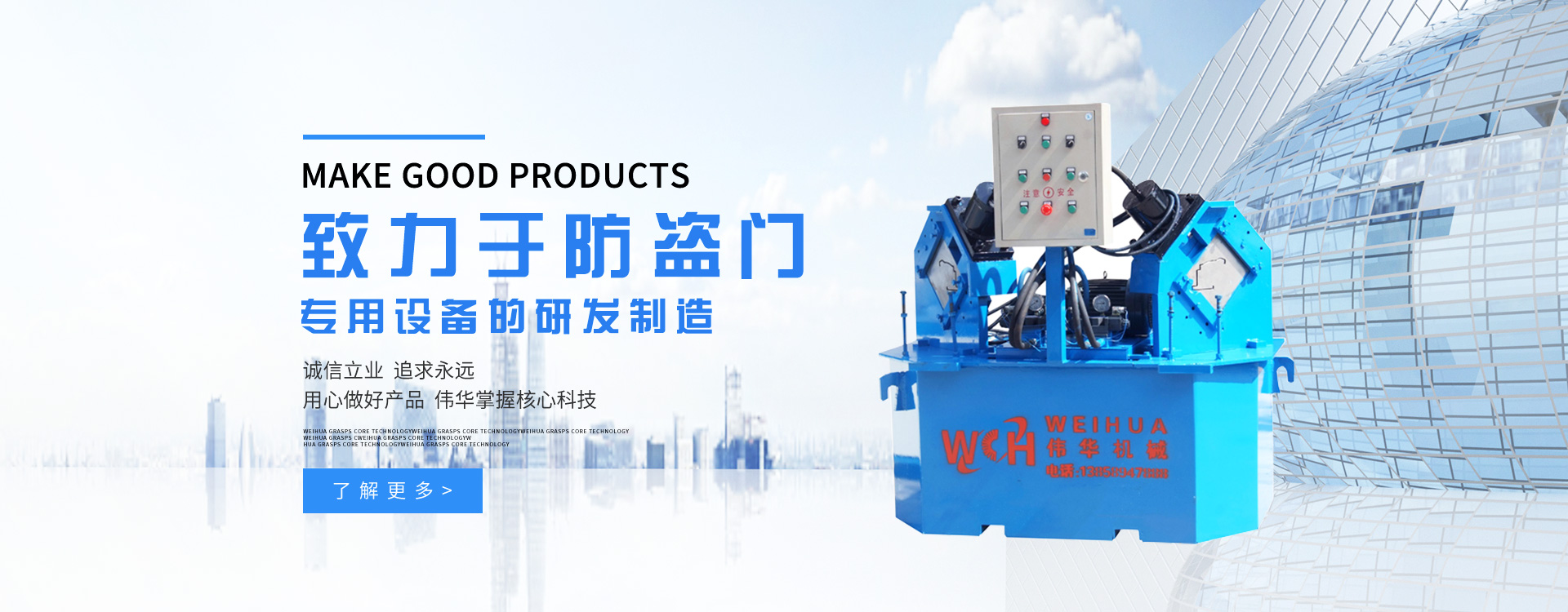 更多>溫州偉華機(jī)械制造有限公司地處浙江溫州瑞安市塘下工業(yè)區(qū),創(chuàng)建于2009年,數(shù)年來(lái)全心致力于防盜門專用設(shè)備的研發(fā)制造,主營(yíng)產(chǎn)品有:門面成型機(jī)、門框成型機(jī)、熱壓膠合機(jī)、組合沖床、液壓折邊機(jī)、雙頭沖床、門面開(kāi)平機(jī)。現(xiàn)已具備獨(dú)特的管理模式和產(chǎn)品開(kāi)發(fā)能力,歷經(jīng)多年的努力,現(xiàn)已發(fā)展成為國(guó)內(nèi)最具影響力的機(jī)械設(shè)備企業(yè)之一。